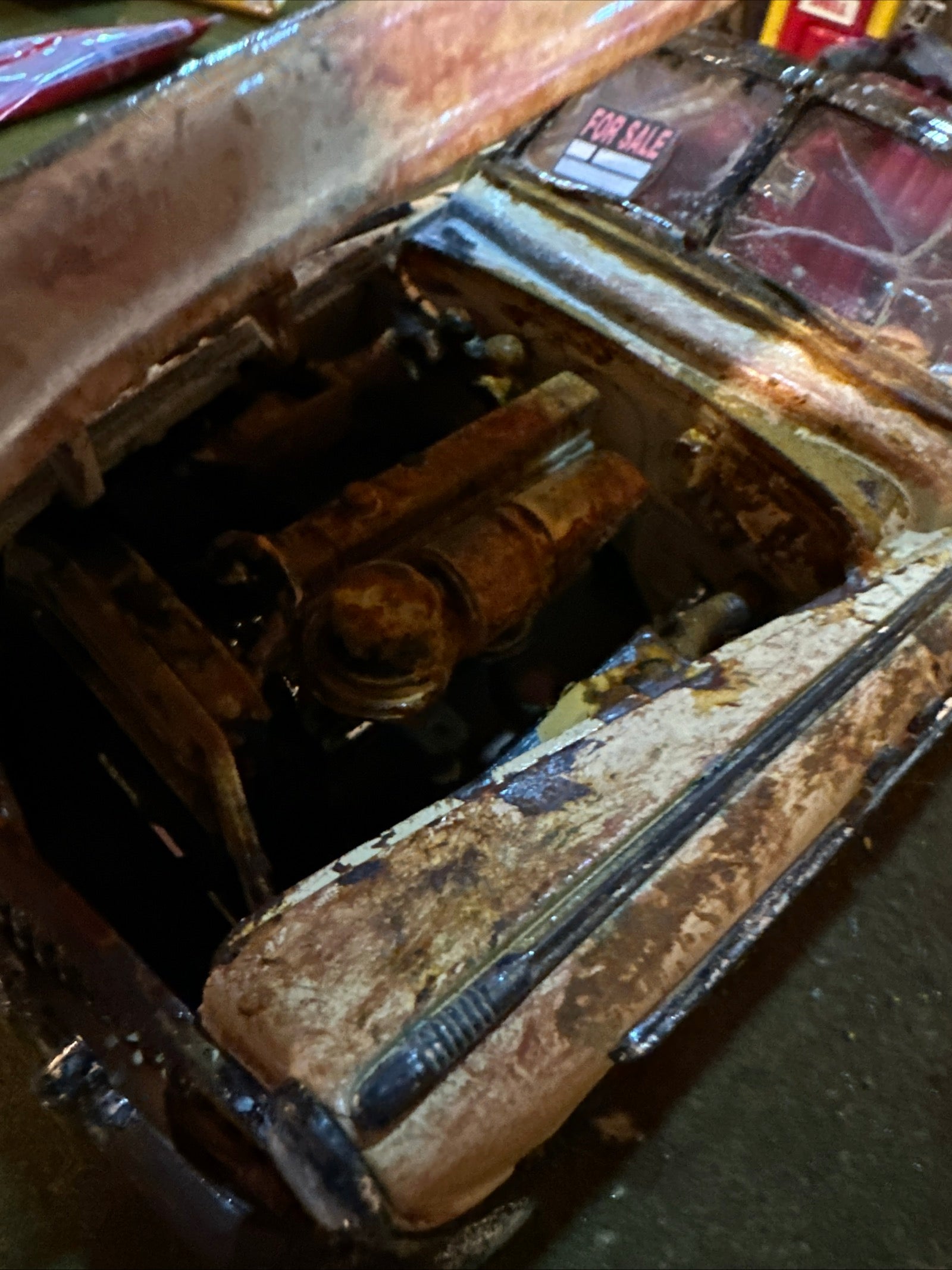 Opening hood, doors and trunk with every area detailed and rusted!