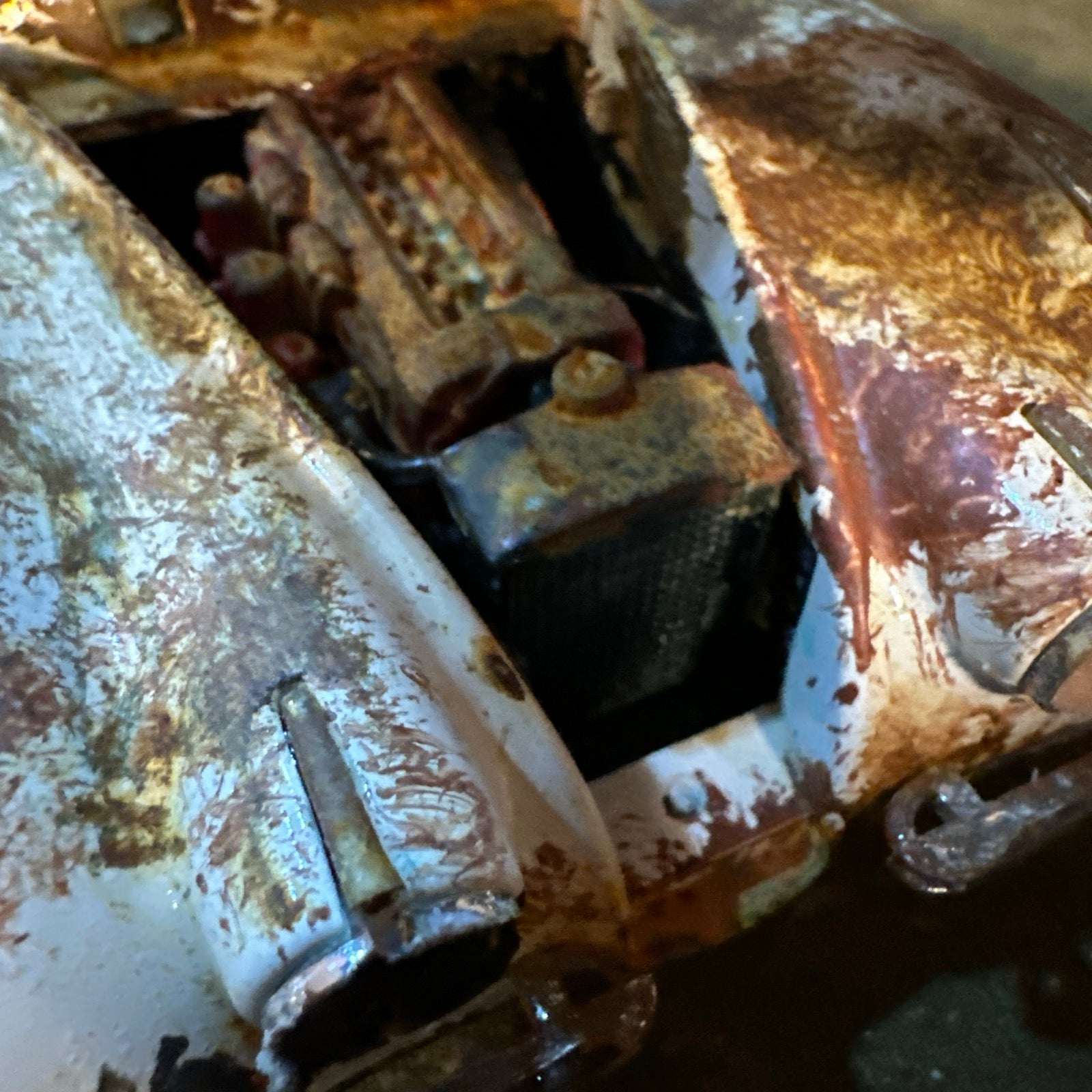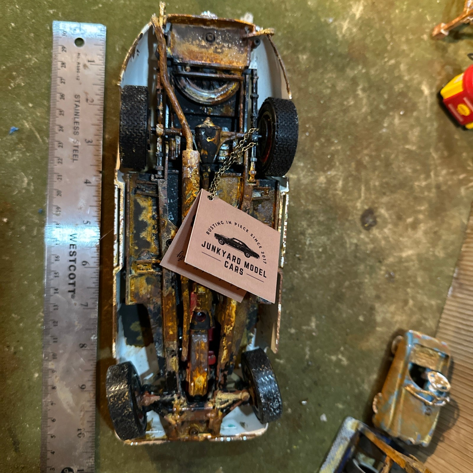 Real rust through a multi step process. Not painted on. A sure winner in your display cabinet. This is a unique opportunity. Authentic looking barn find or junkyard lifelike looking car.