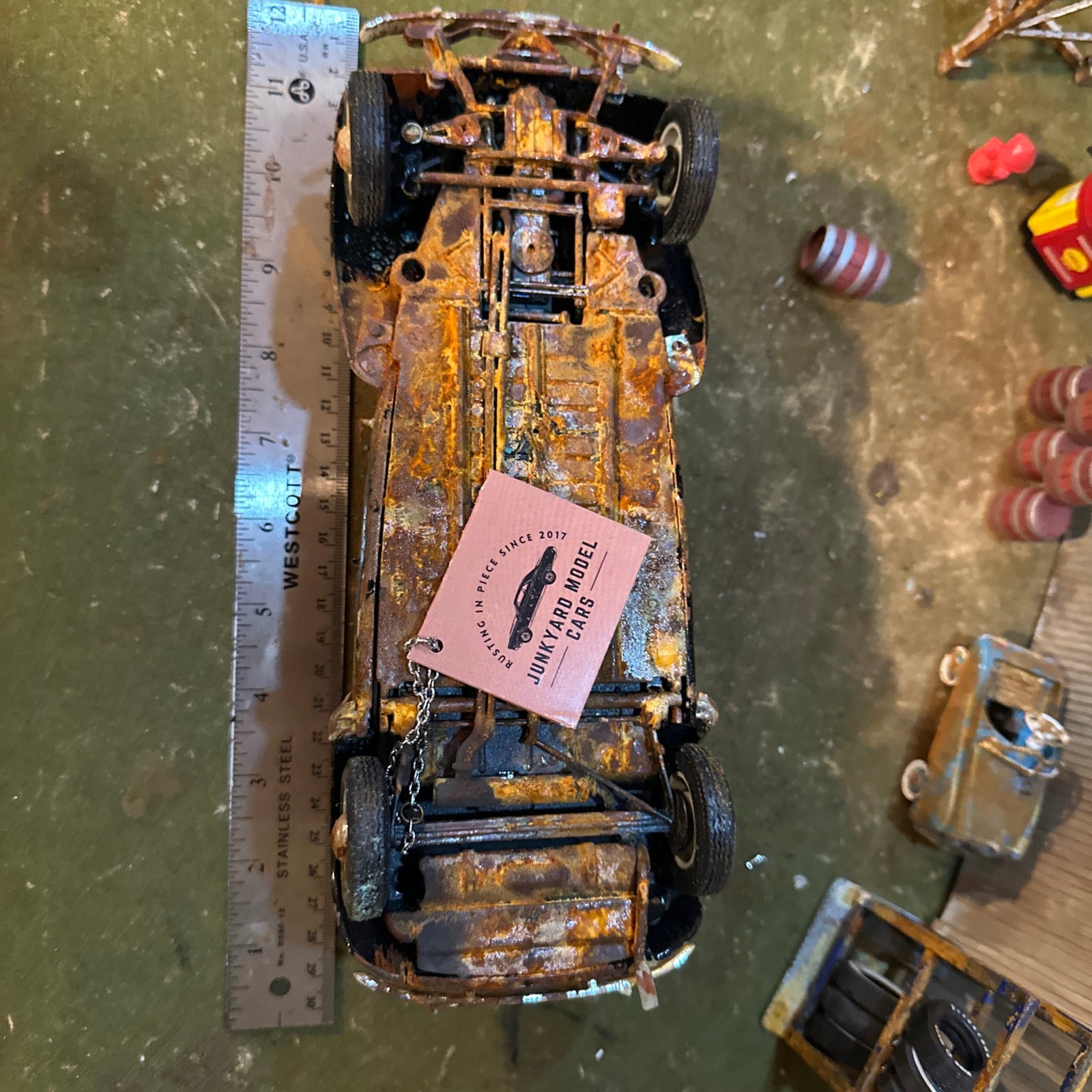Rusted using a multi step rusting process that creates a real rust patina which causes the truck to stand out in your collection.