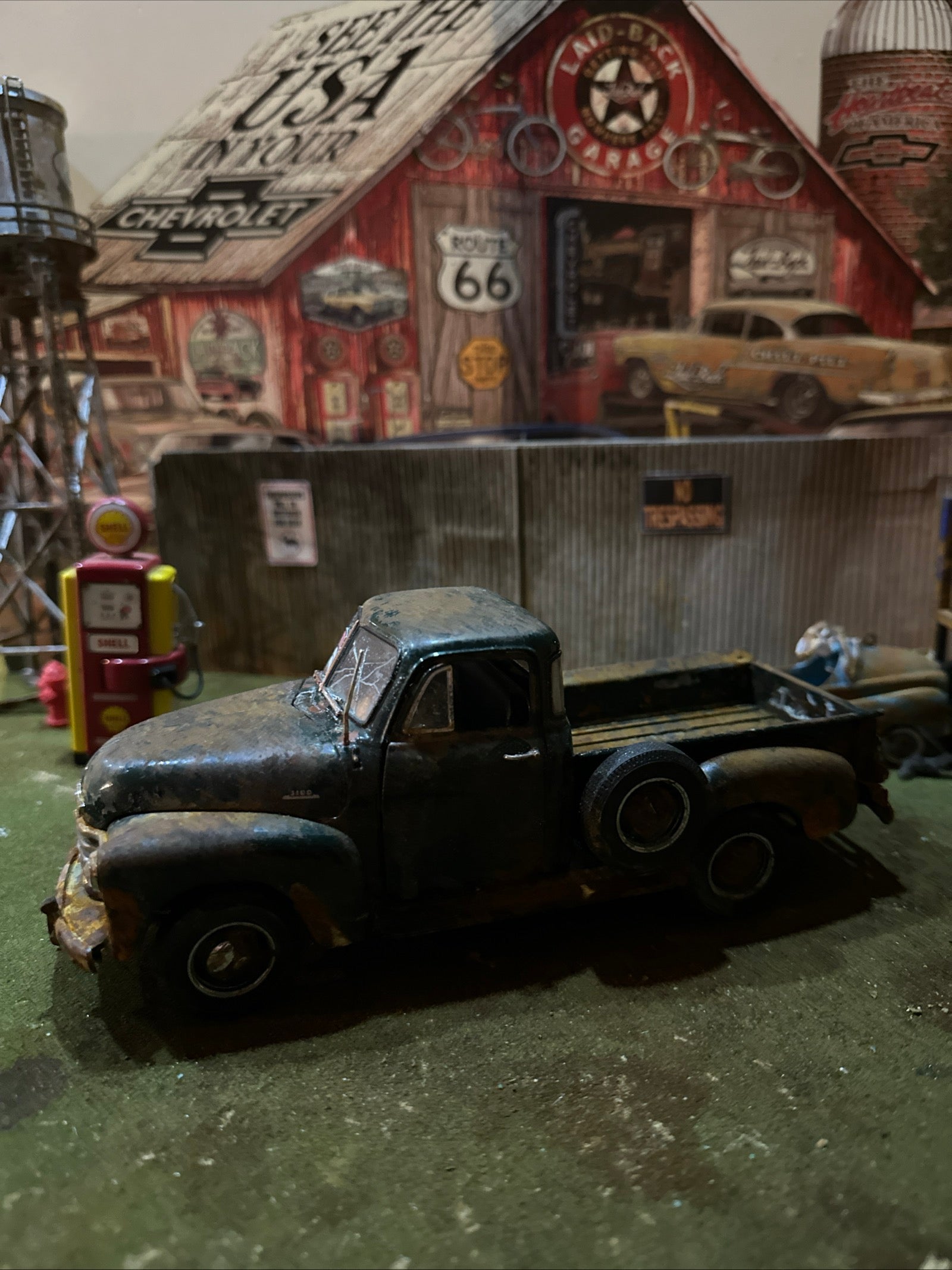 1:24 1953 Chevrolet 3100 Pickup Truck - Aged and Rusted to get the Barn Find Car appeal.