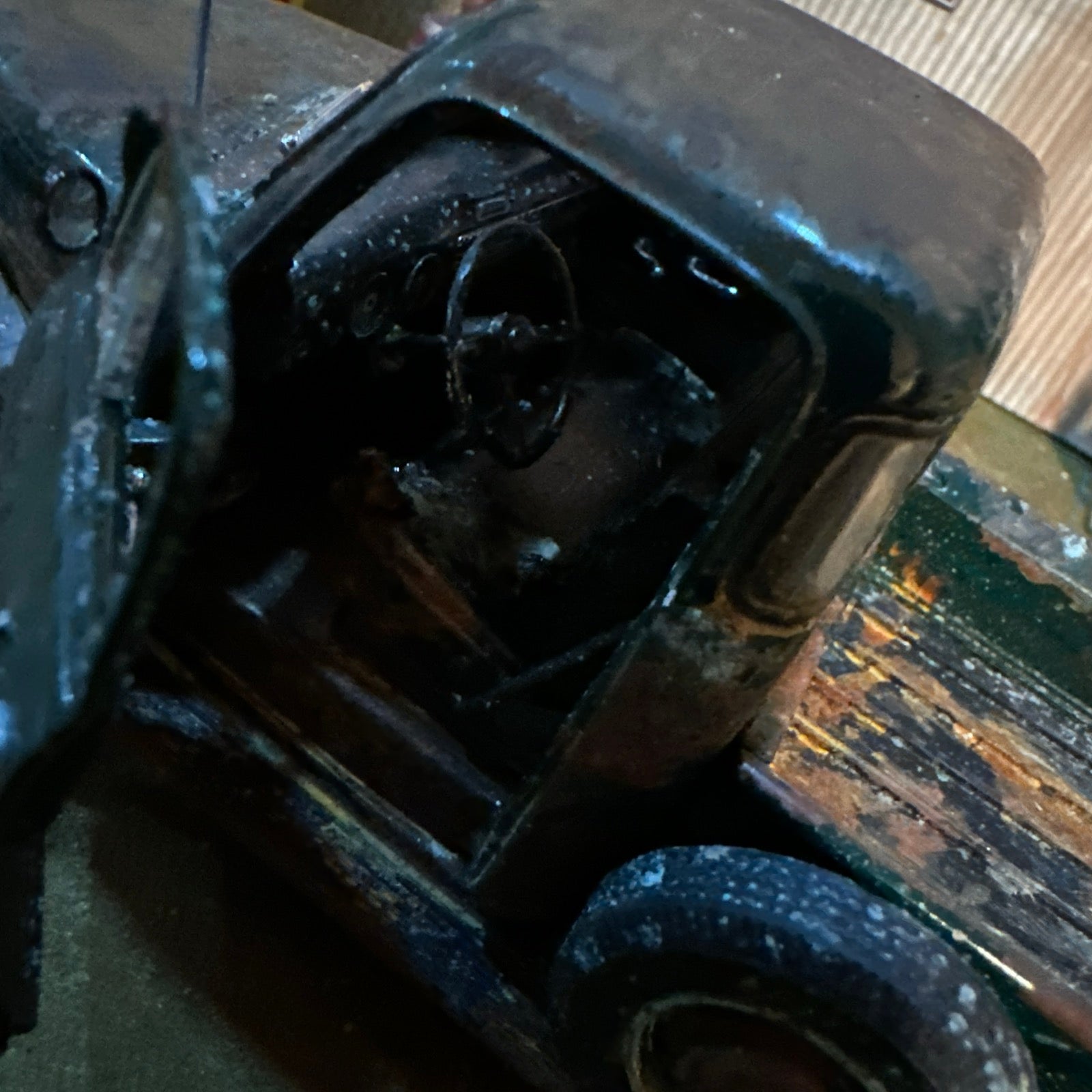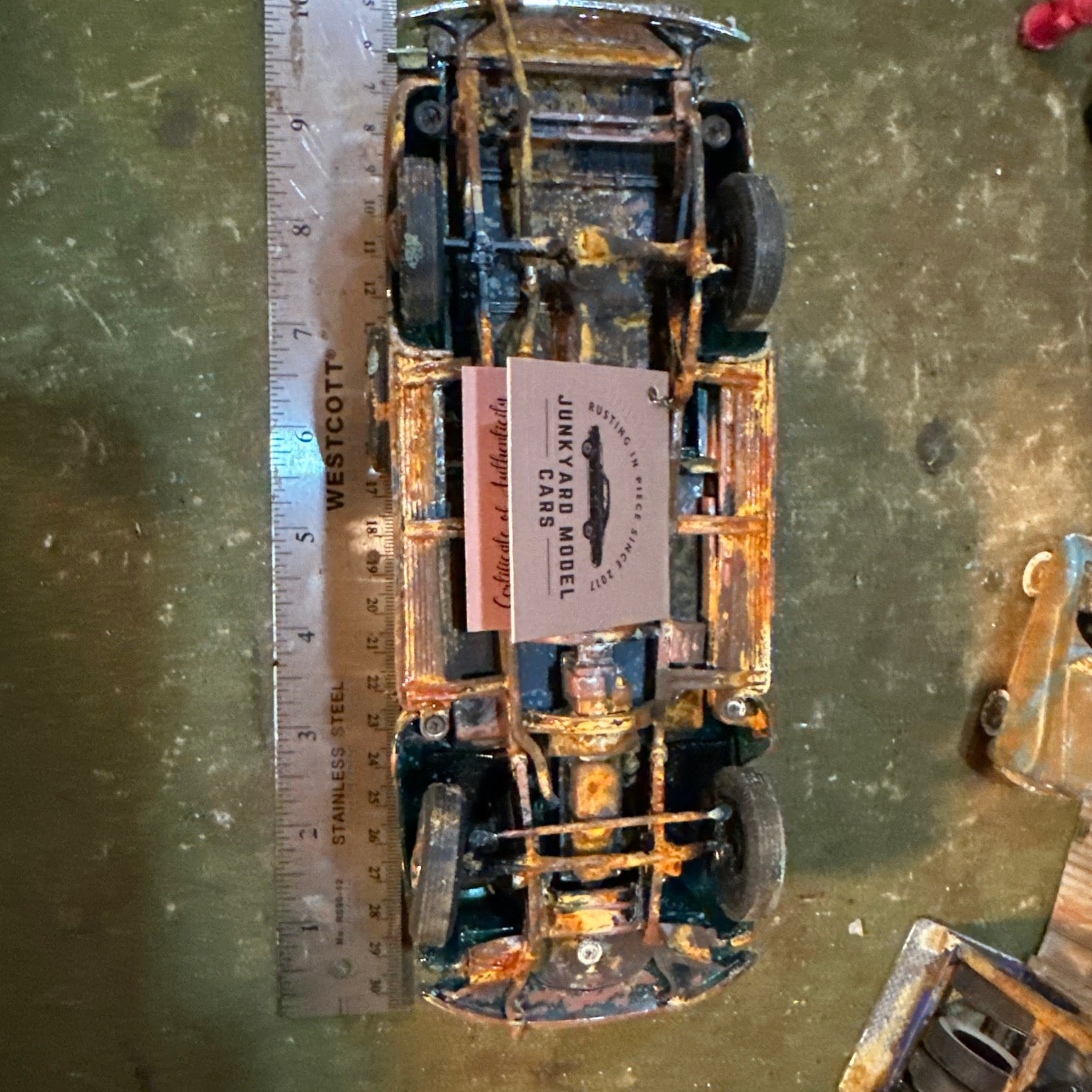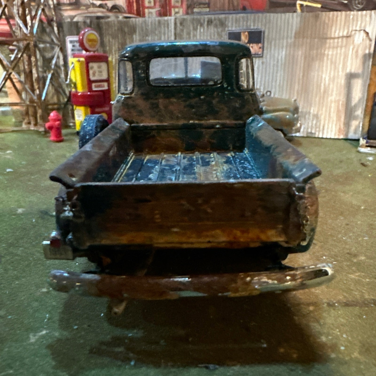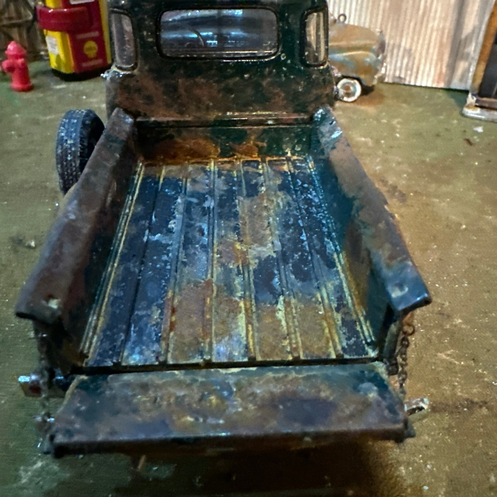 ActruevDanbury Mint in Juniper Green. A very highly detailed and collectable truck! Using a Multi-step rusting process the artist redid the interior to show rotting then heavily rusted the body, interior, undercarriage, and under the hood! Look at all the openings!