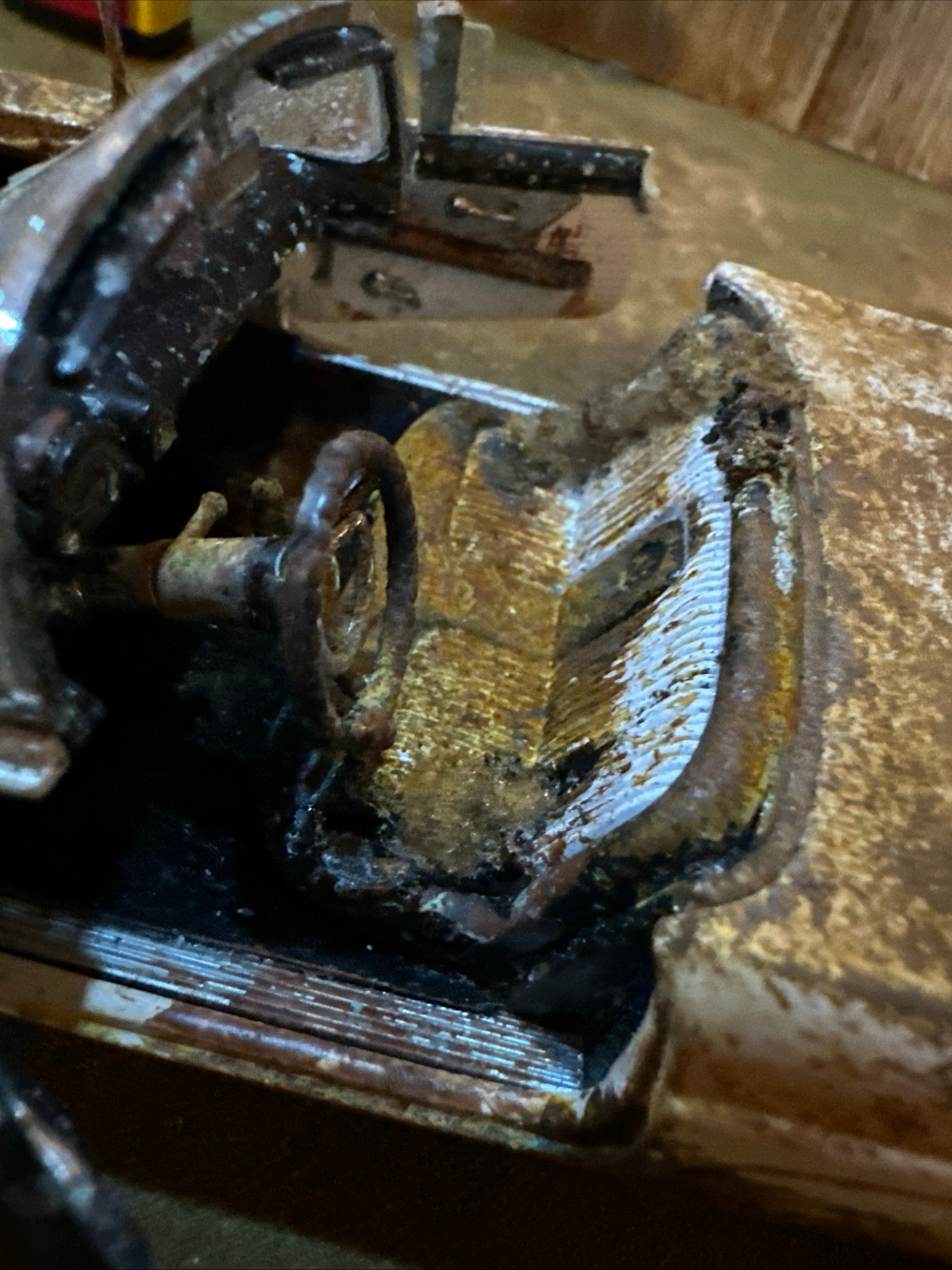 Look carefully, not simply airbrushed with rust colored paint (Think cheap, think quick, think I don’t care if it looks realistic, think No!). This car is actually rusted with a multi step process until a correct level of paint destruction and metal decay has set in based on the age of the car and likely time of exposure. Only real rust captures the velvety patina that makes a model come alive in your display cabinet.