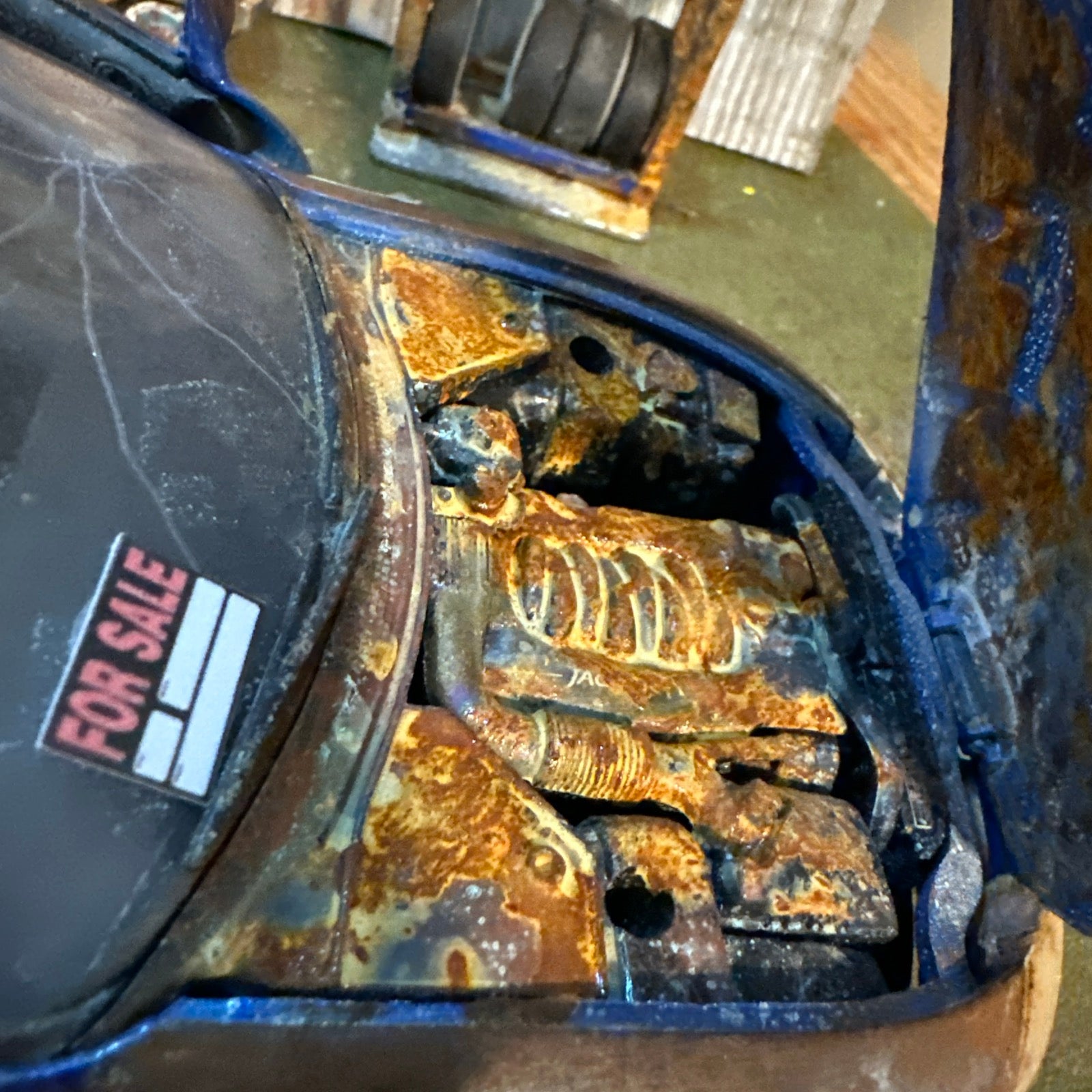 Real rust through a multi step process. Not painted on. A sure winner in your display cabinet. This is a unique opportunity. Authentic looking barn find or junkyard lifelike looking car.